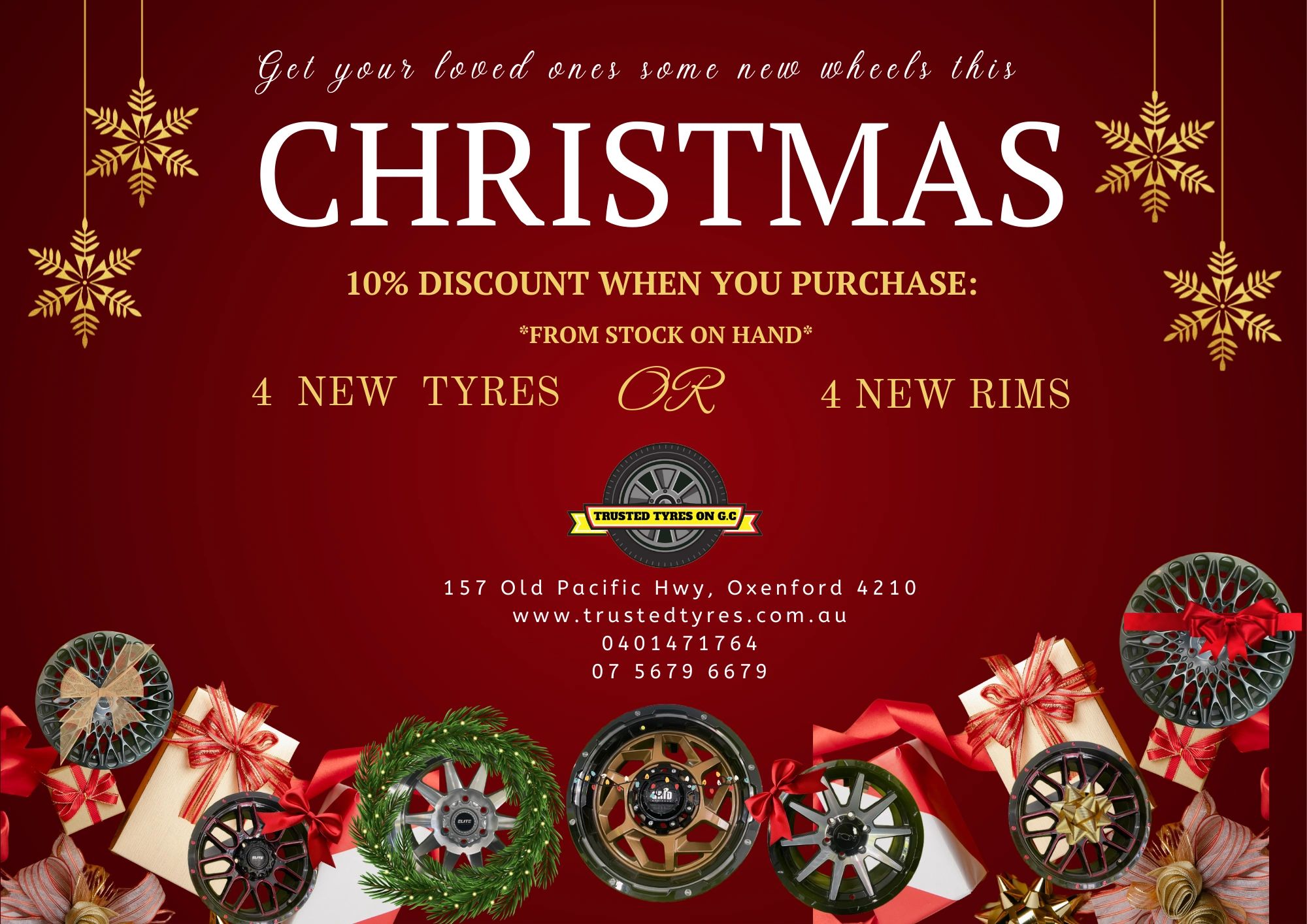 Contact us now to get 10% of your new set of Rims or Tyres this Christmas.